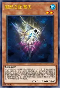 ①:把自己场上1只表侧表示的鱼族怪兽除外才能发动。原本卡名和为这张卡发动而除外的怪兽不同的1只「魊影」怪兽从自己的手卡·卡组·墓地·除外状态特殊召唤。这个效果特殊召唤的怪兽从场上离开的场合除外。