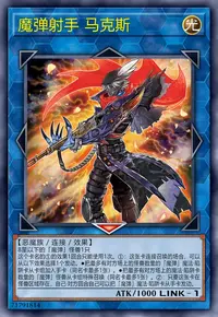 这张卡可以把1只「魔弹」怪兽解放表侧表示上级召唤。这个卡名的②的效果1回合只能使用1次。