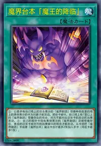 ①:把自己场上1只「魔界剧团」怪兽解放,以自己墓地1张「魔界台本」魔法卡为对象才能发动。那张卡在自己场上盖放。