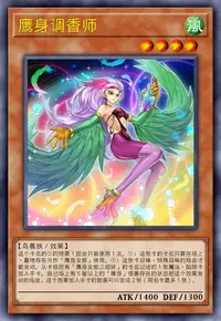 这张卡的卡名当作「鹰身女郎」使用。只要这张卡在场上存在,场上的风属性怪兽攻击力上升300。