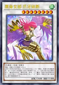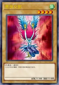 这张卡的卡名当作「鹰身女郎」使用。和这张卡发生战斗的对方怪兽,此怪兽在对方的2个回合内攻击宣言不能。