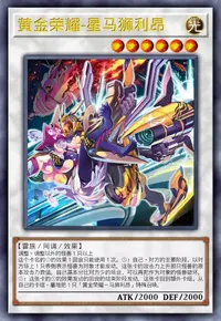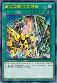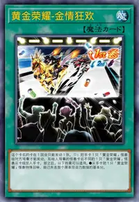 ②:持有比自己基本分数值高的攻击力的怪兽在对方场上存在的场合,从自己墓地把这张卡和1只「黄金荣耀」怪兽除外才能发动。把有除外的怪兽的卡名记述的1只「黄金荣耀」怪兽从额外卡组特殊召唤。