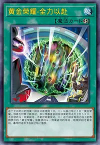 ①:以自己场上1只「黄金荣耀」怪兽为对象才能发动。那只怪兽直到回合结束时攻击力上升500,不会被战斗·效果破坏,不能把效果发动。