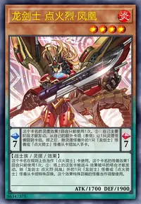 ①:场上的这张卡被战斗·效果破坏的场合才能发动。除「龙剑士 点火烈·凤凰」外的1只「龙剑士」怪兽或「点火骑士」怪兽从卡组特殊召唤。这个效果特殊召唤的怪兽当作调整使用。