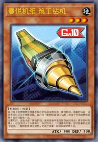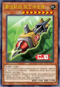 主要阶段,这张卡在「奏悦机组」连接怪兽所连接区存在的场合(诱发即时效果):可以支付500基本分,以对方场上1只怪兽为对象;那只怪兽和这张卡破坏。「奏悦机组 筑工钻机」的这个效果1回合只能使用1次。