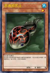 自己场上存在的这张卡被战斗破坏送去墓地时,可以从自己卡组把「恶魂邪苦止」加入手卡。之后卡组洗切。