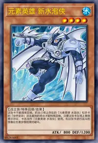 这张卡不能通常召唤。把自己场上存在的「元素英雄 水泡侠」和手卡的「突然变异」送去墓地的场合才能特殊召唤。只要这张卡在场上表侧表示存在,卡名当作「元素英雄 水泡侠」使用。和这张卡进行战斗的怪兽在伤害步骤结束时破坏。