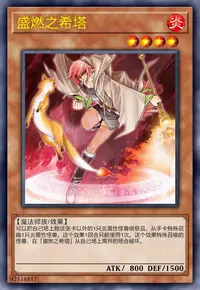 可以把自己场上除这张卡以外的1只炎属性怪兽做祭品,从手卡特殊召唤1只炎属性怪兽。这个效果1回合只能使用1次。这个效果特殊召唤的怪兽,在「盛燃之希塔」从自己场上离开的场合破坏。