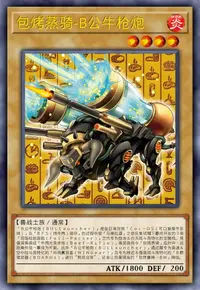「B公牛枪炮(BULLauncher)」是在日渐改良「Coc-OS(可口食操作系统)」及「BFS(炖牛肉)装甲」的过程中受「马德拉酒」之命反复试错下最终开发的3架「铝箔纸包装机(Foil-Packer)」之内专为炮击&白天战斗而特化的支援机。凭借其换装成「牛肉光束步枪(Beef-Rifle)」等武装而令「包烤蒸骑」应对中·远距离作战一事成为可能。此外「B公牛枪炮(BULLauncher)」通过跟专为高速&空中战斗而特化的「W鸡翼装备(WINGear)」及专为接近&强袭战斗而特化的「B野猪武器(BOARms)」进行“熟成合体”,还会让热量很高的「包烤兽神-BW」降临。