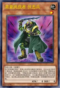 ①:这张卡在手卡·墓地存在,自己的表侧表示怪兽和对方怪兽进行战斗的攻击宣言时才能发动。这张卡特殊召唤。这个效果特殊召唤的这张卡从场上离开的场合除外。
