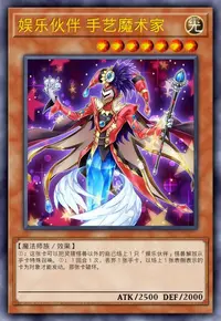 ①:1回合1次,自己场上有怪兽融合召唤的场合才能发动。从自己墓地的灵摆怪兽以及自己的额外卡组的表侧表示的灵摆怪兽之中选「娱乐伙伴」怪兽、「异色眼」怪兽、「魔术师」怪兽之内任意1只加入手卡。