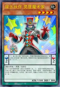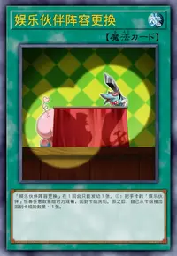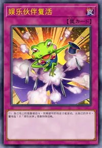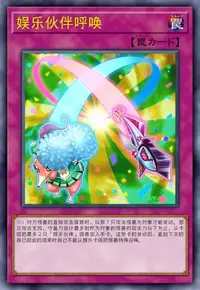 ①:让自己场上1只5星以上的「娱乐伙伴」怪兽回到持有者手卡才能发动。这张卡从手卡特殊召唤。这个效果在对方回合也能发动。
