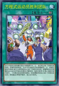 ②:持有比原本等级高5星以上的等级的自己的「方程式运动员」怪兽用和对方怪兽的战斗给与对方战斗伤害时才能发动。选自己的手卡·场上·墓地1张卡除外。「方程式运动员胜利团队」的效果除外的自己的「方程式运动员」场地魔法3种类齐集时,自己决斗胜利。