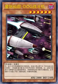①:自己·对方的准备阶段才能发动。在自己场上把1只「DOG战斗机衍生物」(机械族·暗·6星·攻2000/守2400)特殊召唤。
