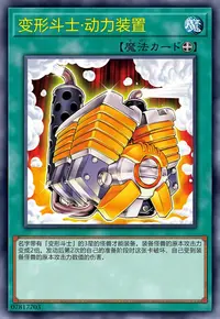 名字带有「变形斗士」的3星的怪兽才能装备。装备怪兽的原本攻击力变成2倍。发动后第2次的自己的准备阶段时这张卡破坏,自己受到装备怪兽的原本攻击力数值的伤害。