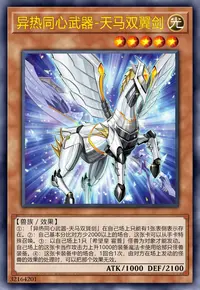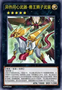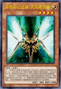 这张卡召唤成功时,可以选择自己场上1只当作装备卡使用的名字带有「异热同心武器」的怪兽表侧守备表示特殊召唤。此外,自己的主要阶段时,手卡的这张卡可以当作装备卡使用给自己场上的名字带有「希望皇 霍普」的怪兽装备。装备怪兽战斗破坏对方怪兽送去墓地时,可以选择自己墓地1只名字带有「异热同心武器」的怪兽加入手卡。