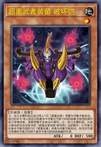 ②:自己主要阶段,从自己墓地把包含这张卡的「超重武者装留 破坏铠」全部除外,以守备力比原本守备力低的1只「超重武者」怪兽为对象才能发动。给与对方那只怪兽的守备力和那个原本守备力的相差数值的伤害。