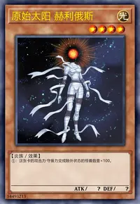 ①:作为这张卡的发动时的效果处理,可以从手卡·卡组把1只「原始太阳 赫利俄斯」特殊召唤。