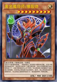 这张卡不能通常召唤。「爆裂模式」的效果才能特殊召唤。这张卡特殊召唤成功时,给这张卡放置2个魔力指示物。这张卡放置的魔力指示物每有1个,这张卡的攻击力上升1000。可以把这张卡放置的2个魔力指示物取除,对方场上存在的卡全部破坏。此外,场上存在的这张卡被破坏时,可以把自己墓地存在的1只「奥金魔导师」特殊召唤。
