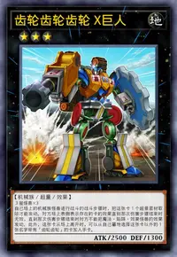 自己场上的机械族怪兽进行战斗的战斗步骤时,把这张卡1个超量素材取除才能发动。对方场上表侧表示存在的卡的效果直到那次伤害步骤结束时无效,直到那次伤害步骤结束时对方不能把魔法·陷阱·效果怪兽的效果发动。此外,这张卡从场上离开时,可以从自己墓地选择这张卡以外的1张名字带有「齿轮齿轮」的卡加入手卡。