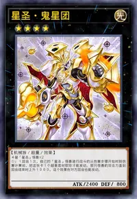 ①:1回合1次,自己的「星圣」怪兽进行战斗的从伤害步骤开始时到伤害计算前,把这张卡1个超量素材取除才能发动。那只怪兽的攻击力直到回合结束时上升1000。这个效果在对方回合也能发动。