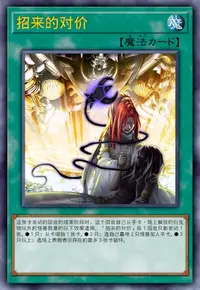 这张卡发动的回合的结束阶段时,这个回合自己从手卡·场上解放的衍生物以外的怪兽数量的以下效果适用。「招来的对价」在1回合只能发动1张。