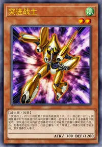 ①:自己的「战士」同调怪兽和对方怪兽进行战斗的伤害计算时,把这张卡从手卡送去墓地才能发动。那只进行战斗的自己怪兽的攻击力只在那次伤害计算时变成2倍。