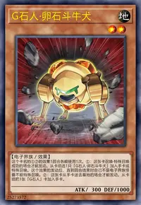 ①:这张卡召唤·特殊召唤成功的场合才能发动。从卡组选1只「G石人·卵石斗牛犬」加入手卡或特殊召唤。这个效果的发动后,直到回合结束时自己不是电子界族怪兽不能特殊召唤。