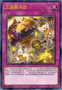 ①:自己场上的怪兽的种族是3种类以上的场合才能发动。和自己场上的怪兽相同种族的怪兽从卡组选3只(相同种族最多1只)。对方从那之中随机选1只,自己把那只怪兽加入手卡或特殊召唤。剩下的怪兽用喜欢的顺序回到卡组下面。