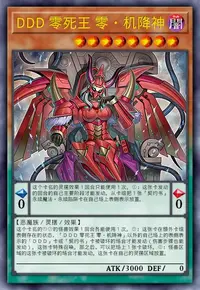 ①:这张卡在额外卡组表侧存在的状态,「DDD 零死王 零·机降神」以外的自己场上的表侧表示的「DDD」卡或「契约书」卡被破坏的场合才能发动(伤害步骤也能发动)。这张卡特殊召唤。那之后,可以把场上1张卡破坏。