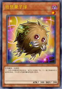 自分のデッキが0枚の状態で、自分のモンスターゾーンに「牲祭栗子球」が表側表示で存在しています。