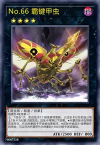 ペンデュラムゾーンの「魔装战士 龙天」を対象として発動した相手の「No.66 霸键甲虫」の『1ターンに1度、このカードのエクシーズ素材を1つ取り除き、このカード以外の自分フィールド上のカード1枚を選択して発動できる。このカードがフィールド上に表側表示で存在する限り、選択したカードはカードの効果では破壊されない』効果が適用されているターンです。