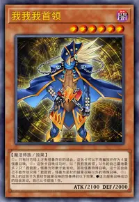 ②:这张卡召唤成功时,以「我我我首领」以外的自己墓地最多2只「我我我」怪兽为对象才能发动。那些怪兽特殊召唤。这个回合自己不能作除只用「我我我」怪兽为素材的超量召唤以外的特殊召唤。