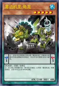 ①:自己场上的怪兽只有「雾动机龙·角龙」以外的「雾动机龙」怪兽的场合,这张卡可以从手卡特殊召唤。