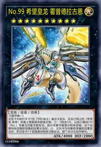 「奇妙超量」の効果によって、「No.99 希望皇龙 霍普德拉古恩」のエクシーズ召喚を行う場合、「希望皇 霍普」と名のついたモンスターの上に重ねてエクシーズ召喚を行う事もできます。