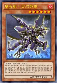 这张卡不能通常召唤。自己场上的效果怪兽的等级·阶级的合计是8以下时,把自己的手卡·墓地3只「狱火机」怪兽除外的场合才能从手卡·墓地特殊召唤。
