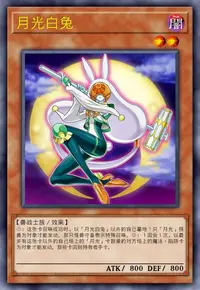 ①:这张卡召唤成功时,以「月光白兔」以外的自己墓地1只「月光」怪兽为对象才能发动。那只怪兽守备表示特殊召唤。