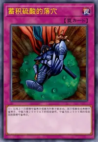 「蓄积硫酸的落穴」の効果が適用される場合、そのモンスターは裏側守備表示から表側守備表示になり、その後に破壊される事になります。
