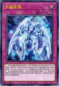 自分のライフポイントが2000の状態で「水晶化身」を発動し、『①:相手モンスターの直接攻撃宣言時、そのモンスターの攻撃力が自分のLP以上の場合に発動できる。このカードは発動後、自分のLPの数値と同じ攻撃力の効果モンスター(戦士族・光・星4・攻?/守0)となり、モンスターゾーンに攻撃表示で特殊召喚する。その後、攻撃対象をこのカードに移し替える。このカードは罠カードとしても扱う』効果によって、モンスターカード扱いとして特殊召喚されています。