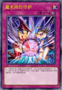 自分の魔法&罠ゾーンに2枚の「魔术师的守护」が表側表示で存在し、モンスターゾーンには「黑魔术少女」が表側表示で存在しています。