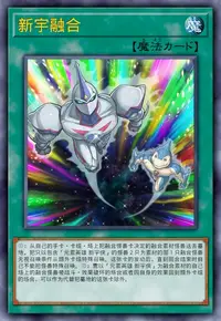 ①:从自己的手卡·卡组·场上把融合怪兽卡决定的融合素材怪兽送去墓地,把只以包含「元素英雄 新宇侠」的怪兽2只为素材的那1只融合怪兽无视召唤条件从额外卡组特殊召唤。这张卡的发动后,直到回合结束时自己不能把怪兽特殊召唤。