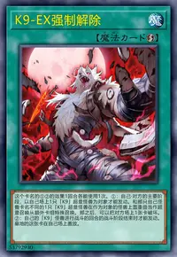 「K9-EX强制解除」の処理時に、対象としたモンスターが自分のモンスターゾーンに表側表示で存在している場合に限り『その自分のモンスターとはカード名が異なる「K9」Xモンスター1体を対象のモンスターの上に重ねてX召喚扱いでEXデッキから特殊召喚する』処理が行われます。