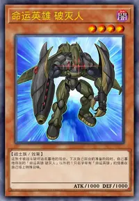 这张卡被战斗破坏送去墓地的场合,下次自己回合的准备阶段时,自己墓地存在的「命运英雄 破灭人」以外的1只名字带有「命运英雄」的怪兽在自己场上特殊召唤。