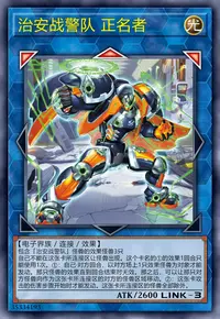 「治安战警队 乱破小夜丸」と、「治安战警队 组队双犬」と「I:P伪装舞会莱娜」をリンク素材として、「治安战警队 正名者」をリンク召喚しました。