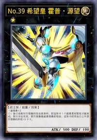 質問の状況の場合、自分のモンスターゾーンには表側表示のエクシーズモンスターが2体存在していますが、『その内のランクが一番低いXモンスター』である「No.39 希望皇 霍普·源望」はランク1のエクシーズモンスターです。