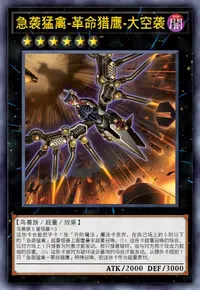 ②:这张卡被对方破坏送去墓地的场合才能发动。从额外卡组把1只「急袭猛禽-革命猎鹰」特殊召唤,把这张卡作为超量素材。