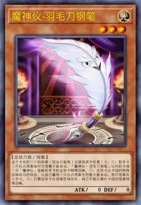 ①:把手卡1只仪式怪兽给对方观看才能发动。「魔神仪-羽毛刀钢笔」以外的卡组1只「魔神仪」怪兽和手卡的这张卡特殊召唤。