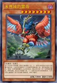 ①:把手卡的这张卡给对方观看才能发动。从自己的全部手卡之中由对方随机选1张,自己把那张卡丢弃。那是「未界域的雷鸟」以外的场合,再从手卡把1只「未界域的雷鸟」特殊召唤,自己从卡组抽1张。