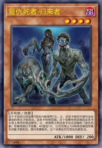 ②:仪式召唤的这张卡被送去墓地的场合才能发动。从卡组把1张仪式魔法卡加入手卡,从卡组把1只「复仇死者」怪兽送去墓地。