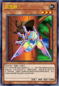 ①:这张卡特殊召唤成功的场合才能发动。在自己场上把1只「蝉蜕衍生物」(昆虫族·地·3星·攻/守0)特殊召唤。只要这个效果特殊召唤的衍生物在怪兽区域存在,自己不是昆虫族怪兽不能从额外卡组特殊召唤。